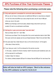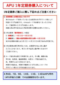 ◇2026年春のAPU1年定期券販売日程のお知らせ◇
